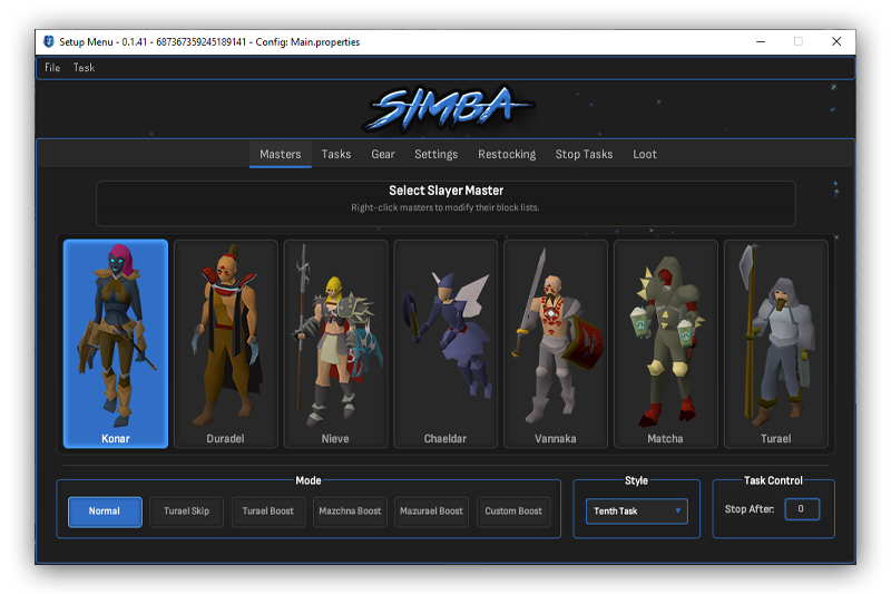 Configure your slayer master and boosting modes